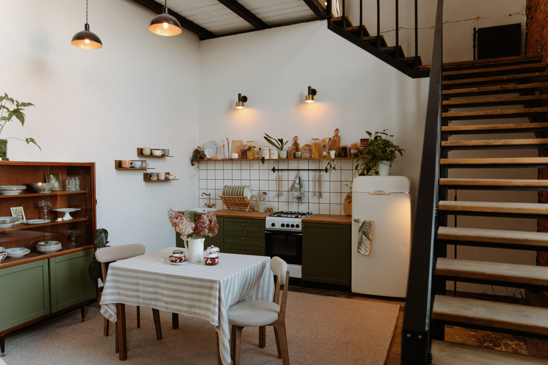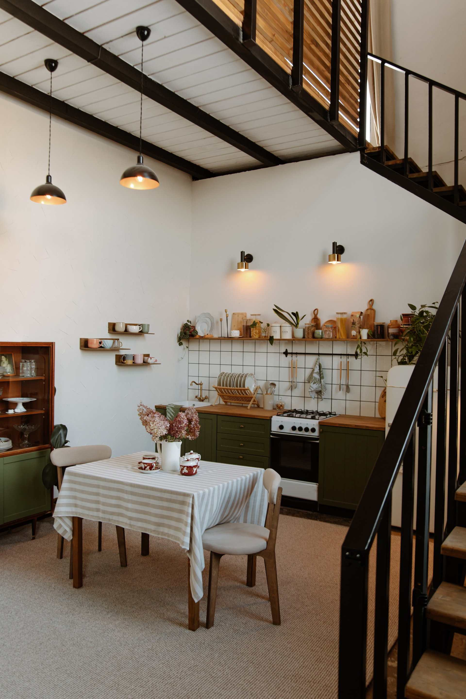 — современный уютный лофт с большой кухней-гостиной на первом этаже