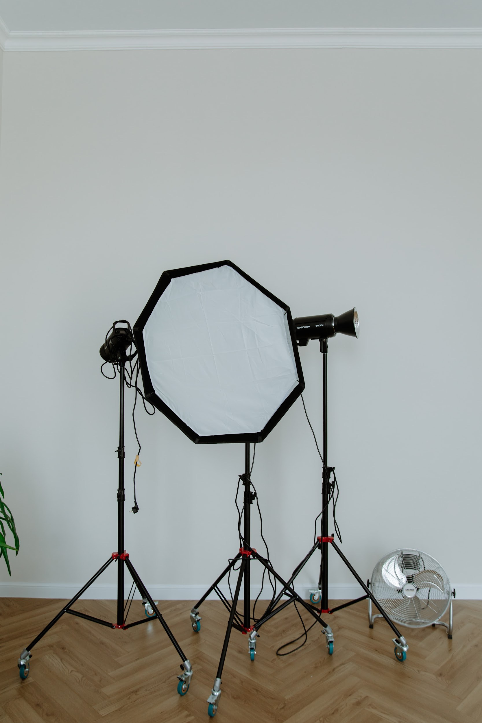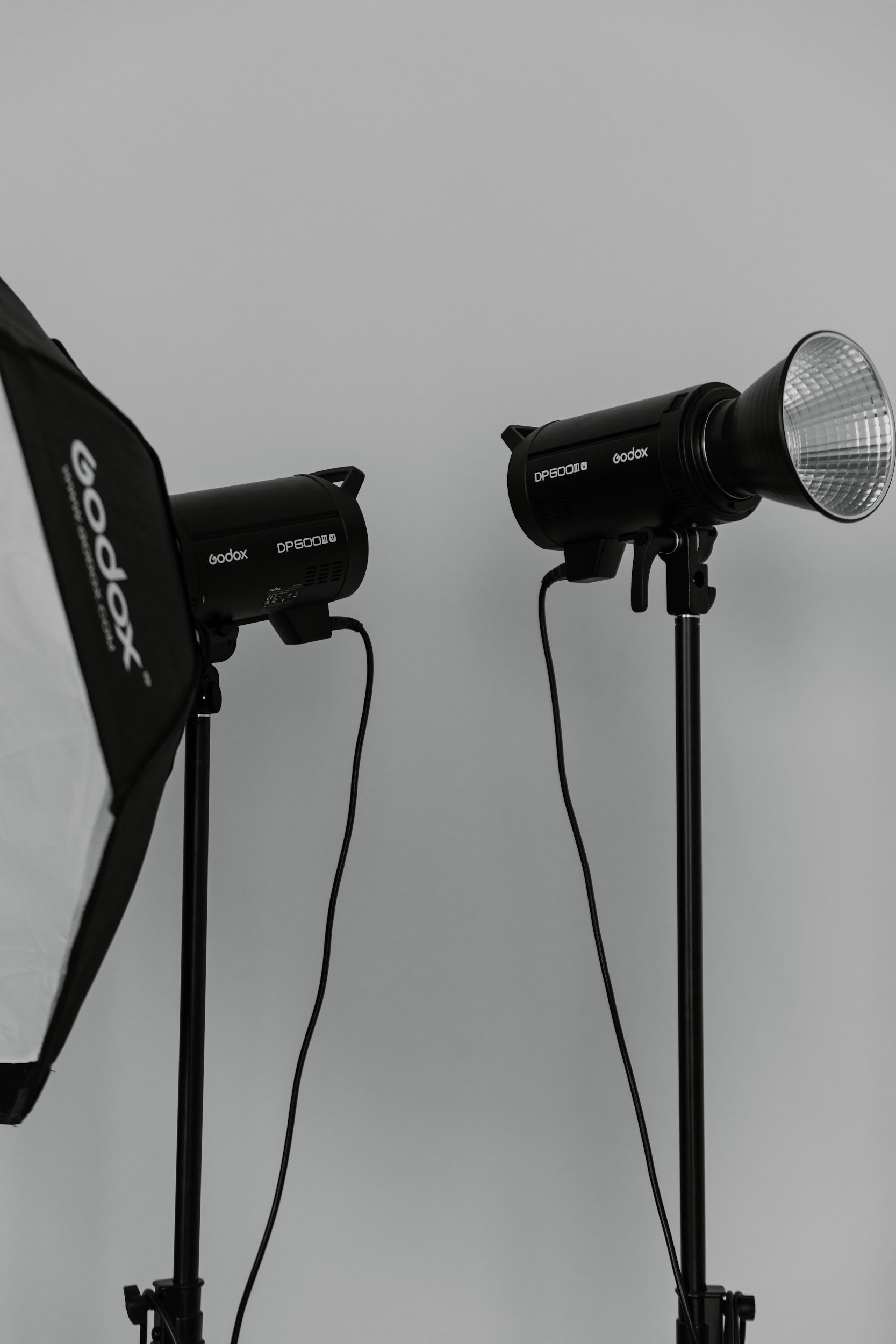 В зале 2 источника импульсного света Godox DP600IIIV (настройка ступеней импульса 1/1-1/64)